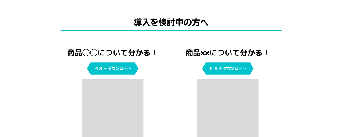 ダウンロード資料とは「商品の特長」「導入事例」「費用」などをA4サイズに纏めた資料で、ホワイトペーパーとも呼ばれることが有ります。ホワイトペーパーは社内稟議などで使われる事があるので、誰が読んでも「導入するメリット」がハッキリと伝わりやすい資料にする事が必須です。手間ですが各商品に1つずつ用意することが重要です。